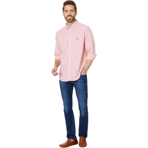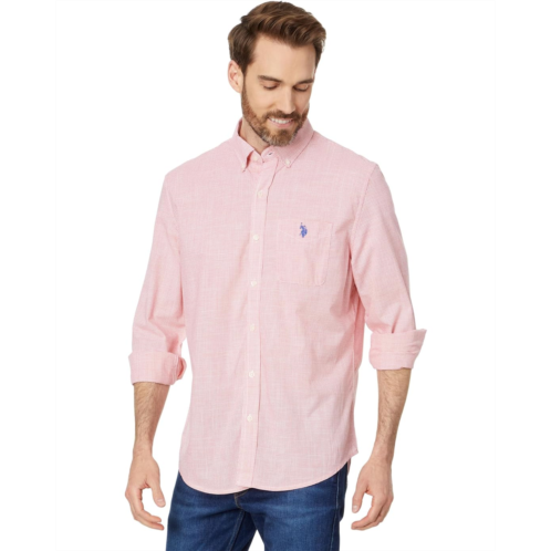 [US] U.S. POLO ASSN. Long Sleeve Classic Fit 1 Pocket Gingham Cotton Stretch Yarn Dye Slub Poplin Woven Shirt