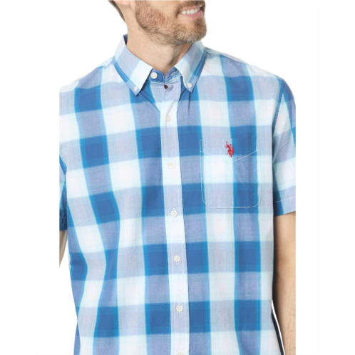 Exude an effortless style statement wearing U.S. POLO ASSN. Short Sleeve CVC Yarn-Dye Large Plaid Woven Shirt.