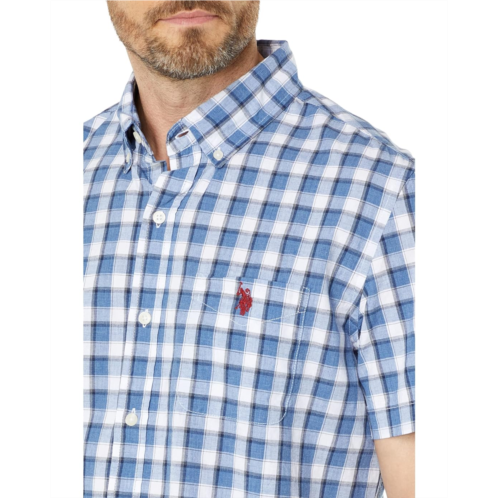 Keep it subtle and classy whenever you head out for your day wearing the U.S. POLO ASSN. Short Sleeve Yarn-Dyed Heathered Plaid Poplin Woven Shirt.