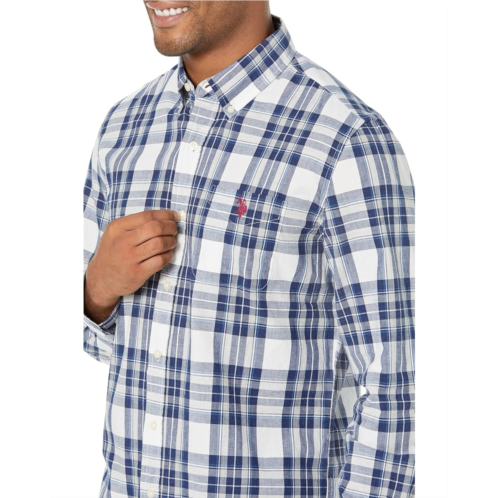 Bring a classic change to your wardrobe by opting for U.S. POLO ASSN. Long Sleeve Classic Fit Yarn-Dye Poplin Heather Woven Shirt.