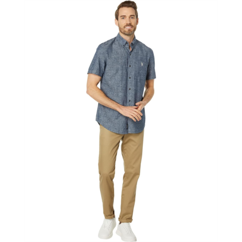 Amp up your office casual wear in the U.S. POLO ASSN. Short Sleeve Printed Chambray Denim Woven Shirt.