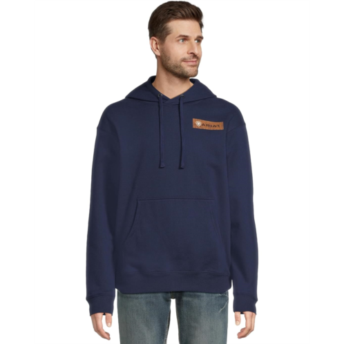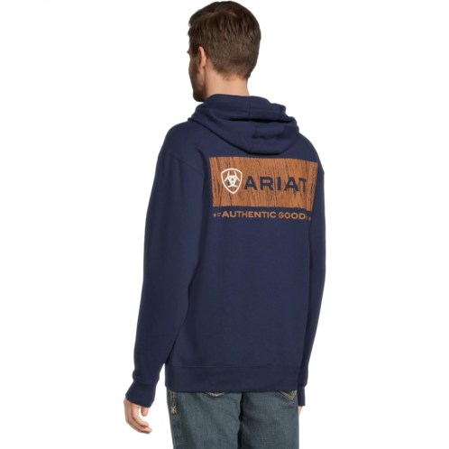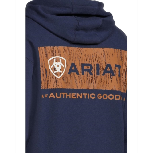Experience cozy comfort and a soft hand feel wearing the Ariat Woodshop Stack Hoodie. The pullover features a hooded neck with a drawstring closure, long sleeves with ribbed cuffs, graphic detail with branding on the left chest & back, and a straight ribbed hem.