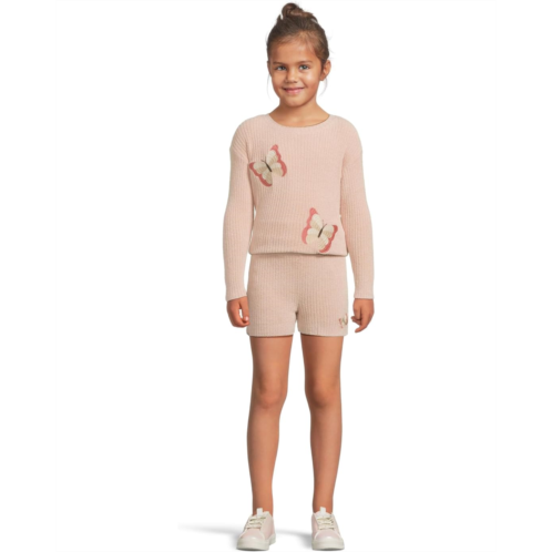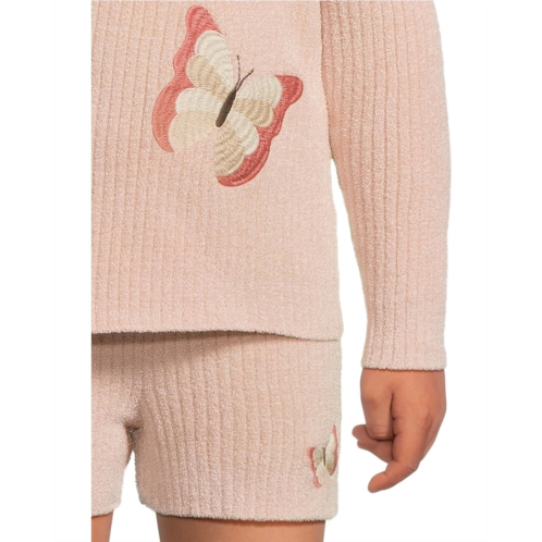 Barefoot Dreams Kids Cozychic Ultra Lite Toddler Butterfly Set! Featuring a ribbed crew neck top with large embroidered butterfly artwork and an elasticated waistband short with embroidered butterfly detail. Made with our signature ultra-light fabric, your little one will stay cozy and stylish. The top comes with long sleeves and a straight.