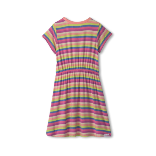 Dress up in a fun and casual way donning the Hatley Kids High-Low Hem Dress. This short sleeve dress features a crew neckline, slightly smocked waist, allover striped print, and a high-low hemline.