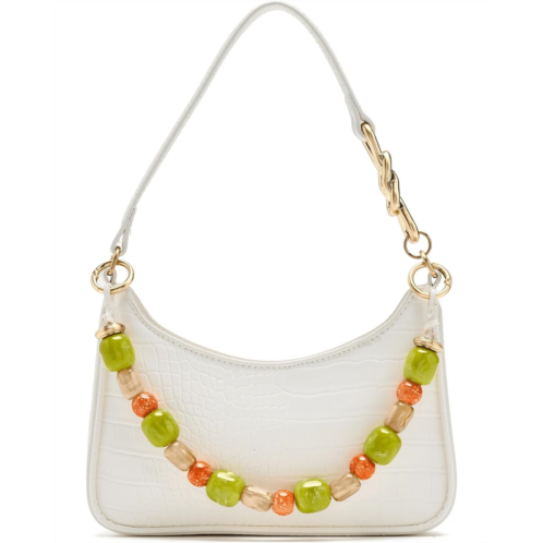 The ALDO Whitegemm bag is a stylish shoulder bag crafted from durable polyurethane materials with sleek metal hardware that adds a subtle shine. Designed for everyday elegance and versatility, this bag features a secure zippered closure and a roomy interior compartment to hold your essentials with ease. Crafted for versatility, it can be worn multiple ways thanks to its chain-linked shoulder strap and detachable crossbody strap, making it perfect for both day and night styling.