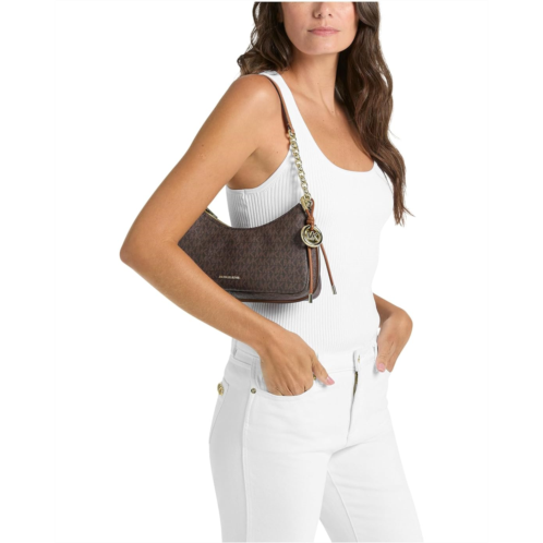 Lightweight and compact, the MICHAEL Michael Kors Nolita Medium Chain Pouchette is crafted from leather with a polished logo charm accent. It features an adjustable, sleek chain-link strap that converts the shoulder bag to a crossbody for on-the-go ease. Styled with gold-tone hardware, this shoulder purse has a zippered main compartment with two front slip pockets and a zippered back pocket.