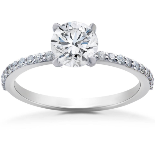 [US] Pompeii3 1 ct lab grown diamond side stone accent engagement ring 14k white gold