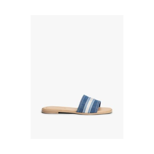 Tommy Hilfiger women's sandal. Complete your weekend looks with these denim slide sandals, designed with a sporty webbing-logo strap for signature appeal.