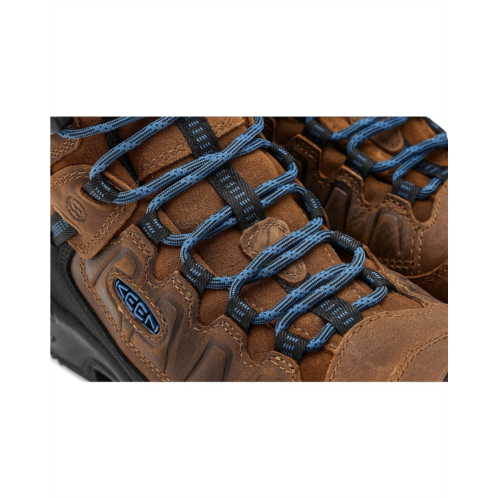 - Ready for the roughest jobsites, the KEEN Utility Targhee 4 work boots are built with an abrasion-resistant sustainable leather upper. A KEEN.DRY waterproof, breathable membrane, asymmetrical composite toe, and slip-resistant rubber outsole keep you ready for any task. KEEN.Luftcell and KEEN.Luftcore provide air-infused cushioning and enhanced shock absorption, respectively. KEEN.FUSION construction bonds the upper to the sole for lasting performance that won't pull apart. The Targhee 4 Work+ waterproof construction boots for men are built off KEEN's Original Fit giving extra room for toes to spread out and extra support. KEEN Utility products offer removable insoles. These dependable work boots are great for medium-duty work in roofing, construction, utilities, landscaping, maintenance, and electrical. KEEN Utility sources all leather from tanneries certified by the Leather Working Group (LWG); which reduces water and energy use. This pair of shoes features round toe, lace-up closure, shank for midfoot support, and perfect cushioning. It delivers the perfect kind of safety, comfort and performance that contributes to living a richer, fuller, multidimensional life - on the job and off.