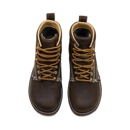 - The KEEN Utility Liberty 6' Waterproof 90º Heel Boots give you rugged style and reliable, waterproof performance. Crafted with premium leather, these American-built boots deliver durability and a sleek, professional look that works as hard as you do. The waterproof design keeps your feet dry in any condition, while the 90º heel ensures superior grip on ladders, rooftops, and uneven terrain. KEEN's Original Fit provides extra room for toes to spread naturally, paired with air-infused midsole support for all-day comfort. The mesh lining promotes breathability, and the removable polyester insole lets you customize your fit. Rugged rubber outsoles handle medium-duty work in roofing, construction, landscaping, maintenance, and energy sectors with confidence.