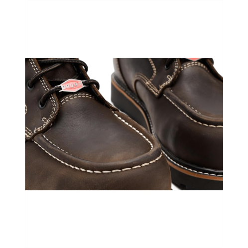 - From oily workshop floors to muddy farm fields and everywhere in between, the BRUNT Marin 6' WP Comp Toe boots are built for workers across a variety of trades. As the brand's bestselling boots of all time, these ankle-high boots feature a waterproof and barnyard-resistant FARMGUARD leather upper sourced from U.S. steer to keep your feet dry, and defend your boots from the damaging effects of oleic acid, urea, sodium chloride, and ammonium hydroxide. With next-level protection engineered into every inch of the boot, they come fully equipped with an innovative slip-, oil-, and heat-resistant rubber outsole and a lightweight and non-metallic composite toe. Their polyurethane insole and leather lining make them comfortable for all-day wear. These lace-up boots are an innovative approach to the classic moc-toe wedge style that over-delivers on comfort every time you lace them up.