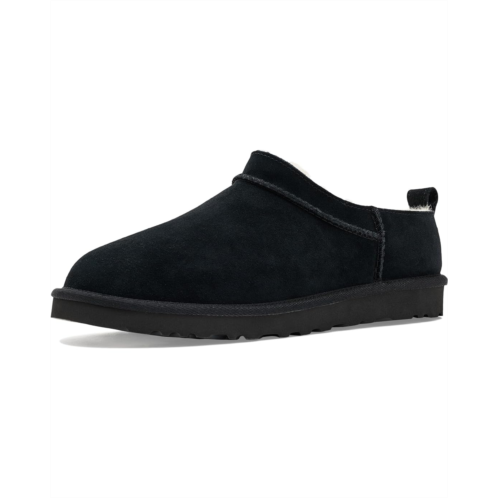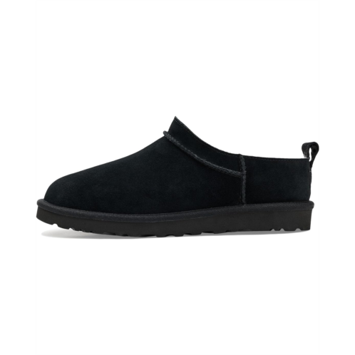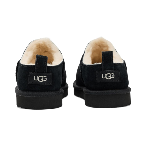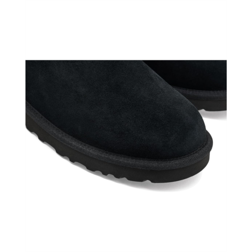 - Stay warm. Stay comfortable wearing the UGG Classic Micro, designed to keep feet warm while remaining breathable and lightweight. Crafted from water-resistant suede upper, fur lining, and insole, this pair of boots features round toe, slip-on style, rear pull tab, woven label with The UGG Logo on insole, and brand logo embossed leather heel label.