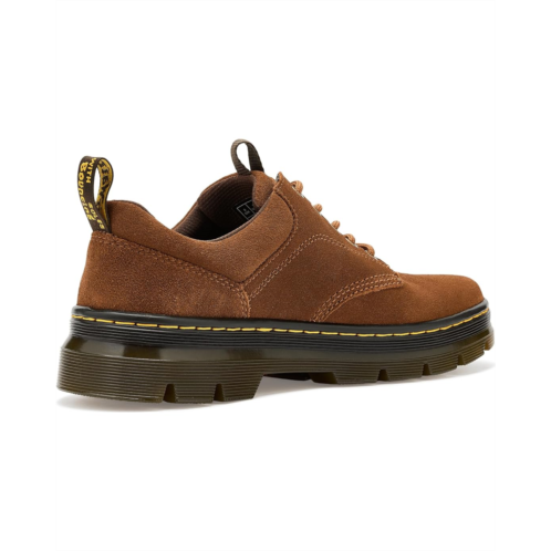 - Built for the everyday. Standing on an extra rugged lug outsole, these Dr. Martens Reeder Leather shoes are made from Saddleback, a hearty leather upper that has a rich pull-up. The low-top shoes feature soft polyester lining, EVA insole, and polyvinyl chloride outsole. Wipe clean using a damp cloth, allow to dry before applying wax-based shoe polish to restore shine as desired.