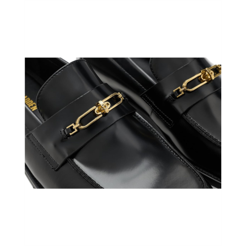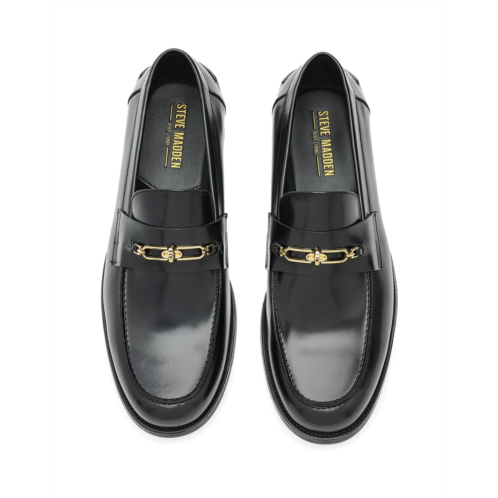 - Give your outfit long-lasting style and elegance with the Steve Madden Norton Loafers. This polished slip-on loafer elevates a timeless silhouette with its smooth leather upper and bold gold chain detail. It is crafted with a synthetic rubber lining, rubber insole, and a low stacked heel that ensures all-day comfort. Sleek and sophisticated, it's the perfect choice for workdays, events, or dressed-up casual looks.