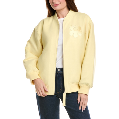 Short coat with lapel collar and long sleeves finished with tab and button. Front welt pockets. Double-breasted front button closure.