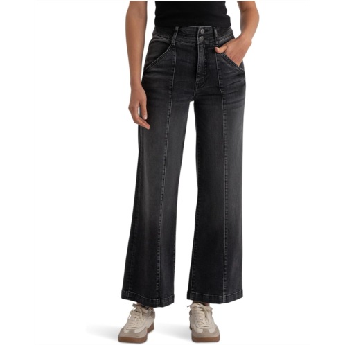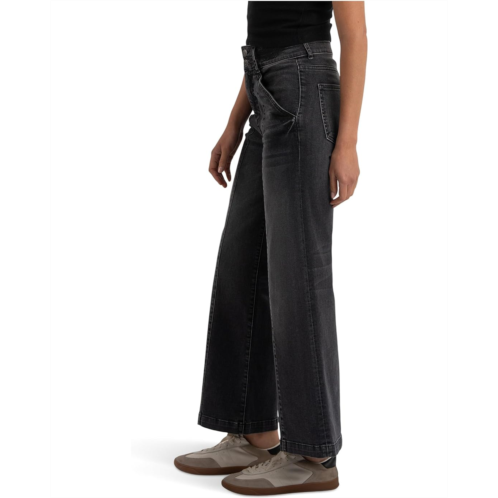 Flawless fit, KUT from the Kloth Meg High-rise Fab Ab Wide Leg Slanted Front Pockets. Designed with a relaxed fit that's fitted through the hips and thighs, these jeans flow into a wide leg silhouette that exudes modern, trend-forward appeal. The high-rise waist flatters your shape, while the Fab Ab front pockets smooth and sculpt for a confident, sleek look. Finished with a zip-fly and button closure, belt loops, and five-pocket styling, the Meg is your go-to for both casual weekends and chic nights out.