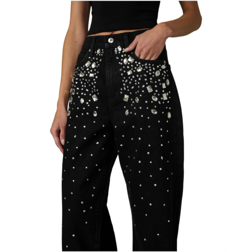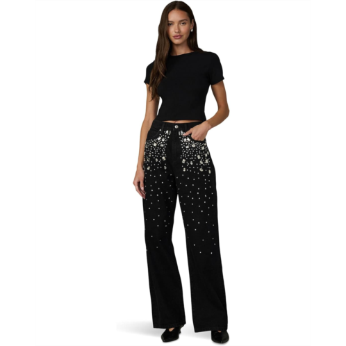 The Joe's Jeans The Harlowe Stone Embellished is a high-rise, wide-leg jean adorned with crystal embellishments for a bold, glam finish. It features a zip-fly with one-button closure and five-pocket styling that maintain classic denim structure.