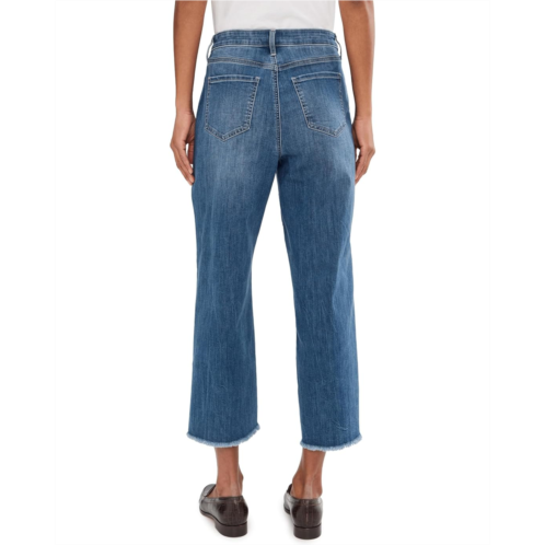 These classic NYDJ Coco Relaxed Wide Leg Crop Jeans in Cool Embrace Denim with fray hems, have a chic silhouette with a loose leg that smooths your curves while looking laid back. Its Lift Tuck Technology uses a proprietary slimming panel with a patented criss-cross design to enhance your natural shape. These pull-on style mid rise jeans features belt loops on the waist, zip-fly and button closure, and classic five-pocket construction.