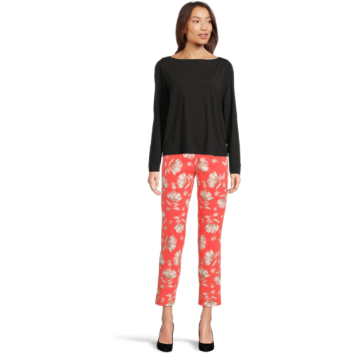 Dressy figure-flattering pant boasts a smooth blend of nylon and rayon with spandex for a smidgen of stretch.