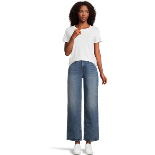 Complement both casual and party-wear tops or tees with the Madewell Perfect Vintage Wide In Vintage Medium/ Dark Work in Concho Wash Jeans for a chic statement and relaxed fit. The pull-on style, high-rise jeans feature a zip-fly & button closure, flat front, belt loops, a five-pocket design, and a straight leg style.
