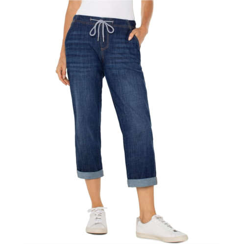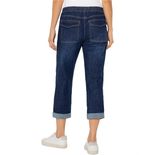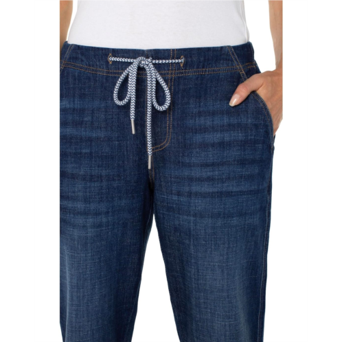 Crafted from a lightweight crosshatch fabric in dark wash, the Liverpool Los Angeles Rascal With Back Pocket Flaps lets you create a stunning statement look. Whether dressed up or down, this style boasts a relaxed fit and radiates a cool, confident energy. Its low waist and loose, slouchy fit can be easily adjusted with the elastic waistband, drawstring, and utility stitch pockets. The utility pockets include two slash pockets at the front and two flap pockets at the back.