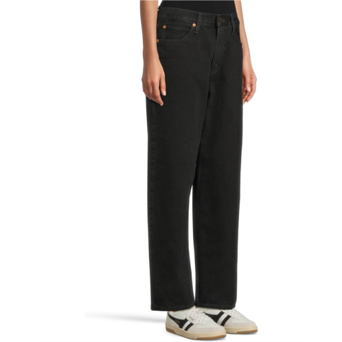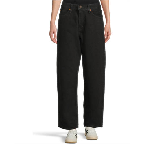 Keep up with the comfort and exude a chic style wearing Levi's Premium Dad Jean that are the perfect fuss-free lightweight pants. The dark wash jeans features a mid-rise smocked elastic waistband for an easy pull-on convenience, belt loops for a customizable fit, and a straight leg style with cropped hem designed to hit right above the ankle. The zip-fly and button closure is designed for convenience, five-pocket styling adds to the funtionality, and the relaxed yet flattering fit adds extra room for a subtle edge.