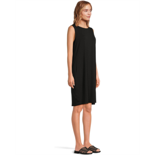 Introducing the Eileen Fisher Round Neck Knee Length Dress! Fluid and polished. A medium-weight jersey that moves effortlessly from day to night. Crafted from stretch jersey knit, the dress has a round neckline, sleeveless style, and a straight hem.