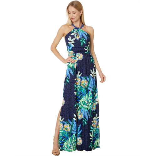 A perfect choice for date nights or casual outings, the Lilly Pulitzer Orla Maxi Dress features an allover floral print for a vibrant touch. The rayon blend fabric of the dress offers all-day comfort and breathability. This printed dress is designed with a halter neckline, side slit, adjustable neck tie at the back, and padded cups.