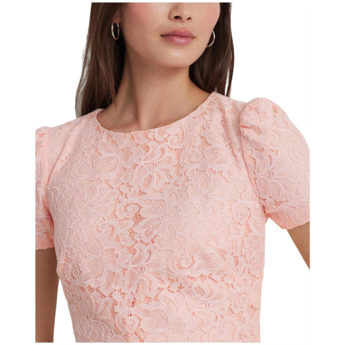 From office events to formal occasions, the LAUREN Ralph Lauren Lace Puff-Sleeve Cocktail Dress is the perfect choice to stay stylish. The floral corded lace fabrication of the dress offers a feminine touch. This mini lace dress features back waist and bust darts for added style and durability. The full satin lining provides better coverage while the short puffed sleeves with shirring details and a round neckline add style. Make your style statement by wearing this sheath dress.