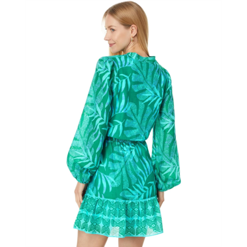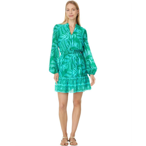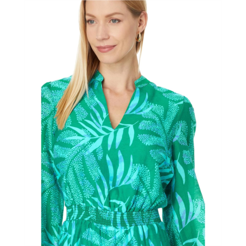 Indulge in luxury wearing the Lilly Pulitzer Axton Dress. This easy-fit dress boasts a notch neck with a stand collar for a touch of sophistication. The smocked waist accentuates your silhouette, while the long sleeves offer a refined look suitable for any occasion. Finished with a playful hem ruffle, this dress combines comfort with stylish flair, making it a must-have for your wardrobe.