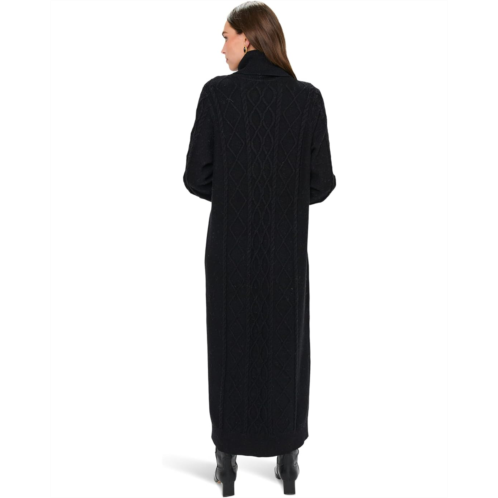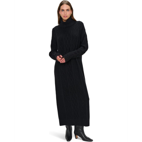 With drop shoulders, cable knit detailing and a ribbed turtleneck you will love this timeless knit midi dress. Cinch the waist with your favorite belt or leave as is for a cozy comfy look.