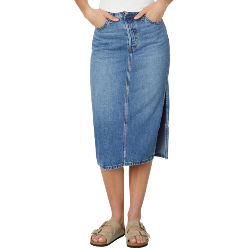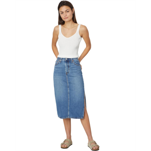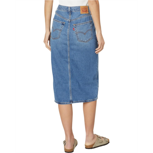 Flirt with fashion wearing the Levi's Womens Side Slit Skirt. Designed with side slits to make it modern, this skirt features mid-rise silhouette, beltloop waistband, zip-fly, button closure and five-pockets style. This mid-rise silhouette skirt is intended to hit below the knees.