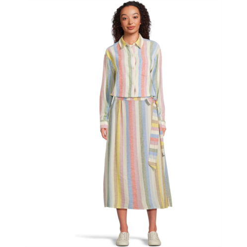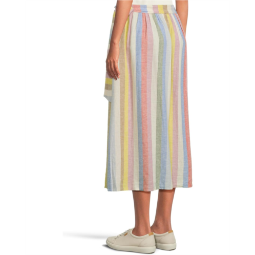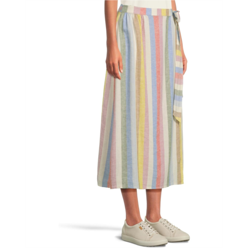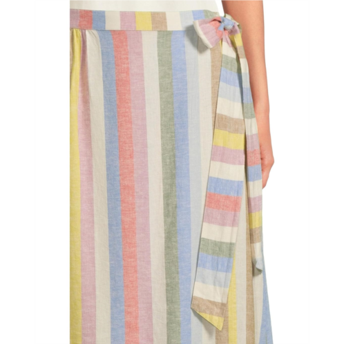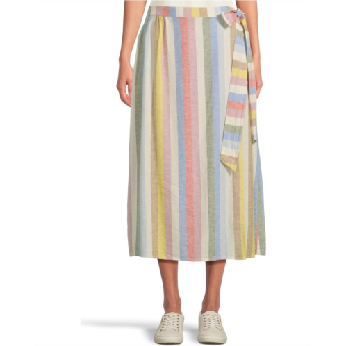The Pendleton Striped Wrap Skirt features a flowing silhouette and a self-sash tie, offering a customizable fit that flatters every shape. It is designed with side pockets for added practicality.