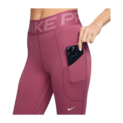 Push yourself harder in Nike Pro Sculpt Dri-FIT High-Rise 7/8 Leggings With Pockets. Thicker and stretchier than the classic Nike Pro material, midweight fabric delivers a smoothing sensation that elevates your workout look. Plus, their wider elastic waistband adds to a more secure feeling as you go for your deepest squat or heaviest lift. Because shaping up isn't just about working out-it's about what you wear while you do it, too. An extra-wide jacquard elastic waistband fits snugly (without pinching or binding) and adds support and shaping around your core. It combines with premium fabric that's both smooth and smoothing, taking Pro to a whole new, selfie-worthy level. And when it's time to whip out the phone, don't worry-pockets on either thigh let you keep it close by through all your moves. Nike Dri-FIT technology moves sweat away from your skin for quicker evaporation, helping you stay dry and comfortable.