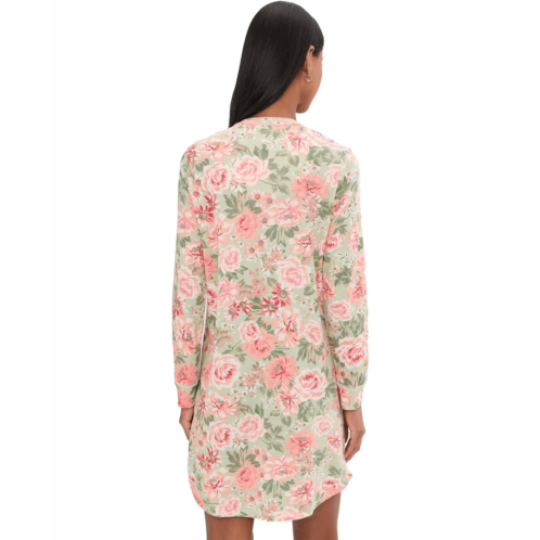 Look forward to a restful evening in the Karen Neuburger Vintage Dreams Long Sleeve Nightgown With Picot Trim. The nightgown features a Henley neck with a quarter-button closure, long sleeves with ribbed cuffs, a patch pocket on the left chest, and a knee-length silhouette. The allover floral print and picot trim details updates the style statement.
