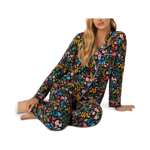 Step into serenity with every soft touch wearing the Bedhead PJs Long Sleeve Classic Cotton Knit Pajama Set. Featuring notch collar neckline, contrast knit piping inserted around the collar, self-sleeve bands with contrast knit piping, four-buttons down the center front, chest pocket, side hand pockets, fully elasticated waistband, and self-hem bands with contrast knit piping.