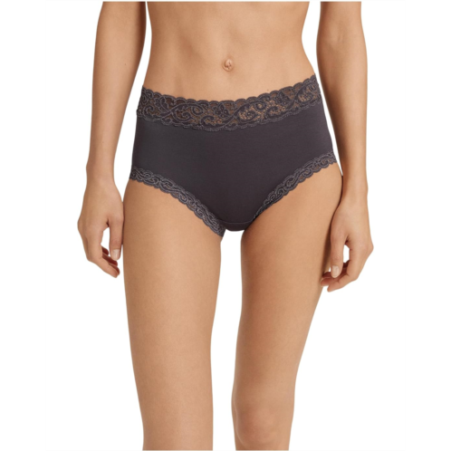 Sleek and flattering, the HANRO Moments Full Brief Panty is tailored from an incredibly soft, long-staple Mercerized 100% cotton, with pretty elasticized trim at the waist and legs for a custom, comfortable fit. Featuring a higher waist and low leg, this lace panty delivers a smooth, flattering profile beneath clothes.