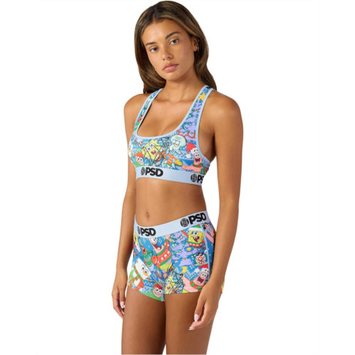 Add comfort to your everyday workout routine wearing the PSD Spongebob Snowpants Sports Bra. It comes with a soft microfiber blend band for dynamic comfort and support, a racer-back design, lined front, flack lock seams for comfort, and a cool Spongebob print.