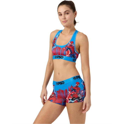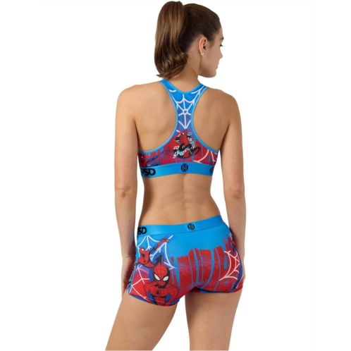 Swing into style donning PSD Peter Parker Drip Sports Bra. Wire-free and featuring a sleek racerback, this sports bra moves seamlessly with your body, letting you conquer workouts without restrictions. Light bra padding and a lined front provide modest coverage while keeping you cool and confident. The soft microfiber blend band ensures dynamic comfort and reliable support, adapting to every stretch and jump. Extra-durable construction means it's built to last, while Flack Lock seams prevent irritation, keeping your focus on your performance, not your gear. Pull-on design makes getting ready effortless, and the trendy Peter Parker Drip print adds a bold, iconic flair to your workout wardrobe.
