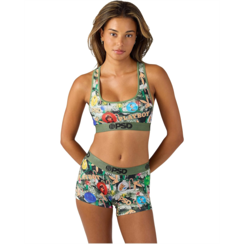 Embrace your athletic spirit in the PSD Playboy Festive Tree Sports Bra. Designed with a wirefree construction and light padding, it offers a smooth, supportive fit that moves with you. The racerback design and pull-on style ensure full range of motion, while the soft microfiber blend band hugs you in dynamic comfort. Flat lock seams reduce chafing, the lined front offers added coverage, and full coverage keeps you confidently supported through every rep, stretch, or swing. Built extra durable for high-energy days, this sports bra is your go-to for everything from gym workouts to everyday hustle.