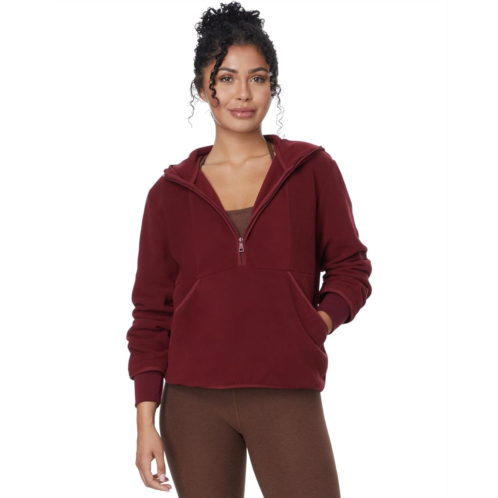 From city to country, nothing beats this insanely cozy Beyond Yoga Urban Explorer 1/2 Pullover. Made of our soft Activate Fleece fabric, it always provides the right amount of warmth. With a half-zip front closure so you can tailor your temperature, and a hood when you want to really wrap up, this pullover is a perfect staple piece. It features a relaxed fit, long sleeves with ribbed cuffs & thumbholes, a kangaroo front pocket to store your small essentials, and a straight hem along with a standard length.