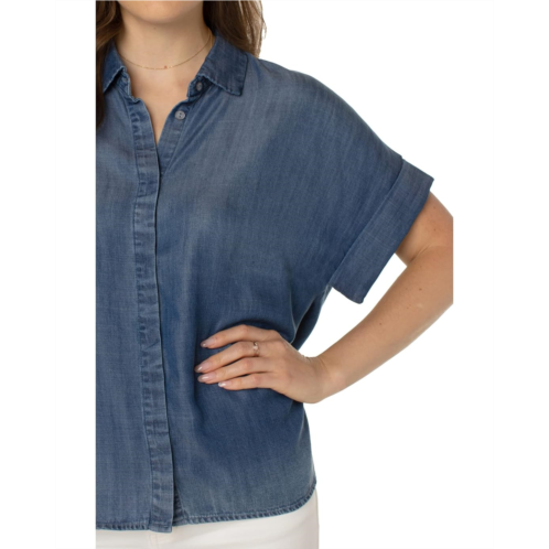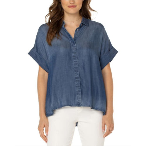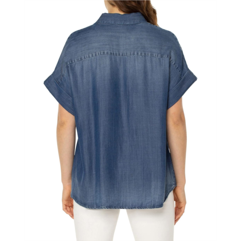 [US] Liverpool Los Angeles Collared Camp Shirt with High-Low Hem