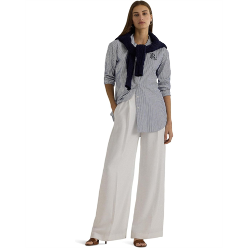 Spend a day in ultimate relaxation and comfort while embracing a classic casual look wearing the LAUREN Ralph Lauren Relaxed Fit Striped Stretch Cotton Shirt. Constructed in a stretch-blend cotton and adorned with yarn-dyed vertical stripes throughout, the shirt features PUREPRESS technology, that is, a durable press finish which offers wrinkle resistance, reduces material strength loss, and protects against abrasion. The point collar, long sleeves with buttoned barrel cuffs, back yoke, and shirttail hem all add to the timeless style of this piece.