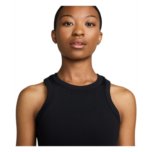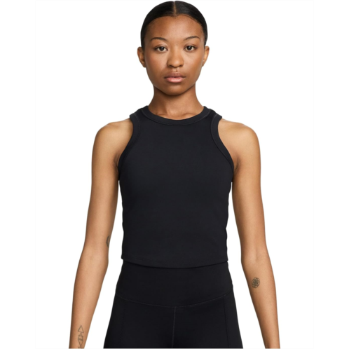 Up for a workout or down to chill, the Nike One Fitted Dri-fit Cropped Tank Top is ready for whatever you are. Midweight, peachy-soft fabric stretches with your every move and dries quickly. The Dri-FIT technology wicks perspiration towards the fabric surface where it can evaporate. Slightly cropped and snug, it's ready to meet your favorite high-waisted leggings for a head-to-toe look that you can feel confident and comfortable in from your morning stroll to your evening wind-down-and at all the stops in between. The pull-on style tank top features a crew neck, a sleeveless racerback design, and a straight hem. Polished details, binding at the neckline and arm openings give the tank a refined finish.