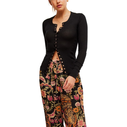 Whisper endless tales of style wearing the Free People Going Places Cardi. It features a split neckline with snap-button front closure and long sleeves complementing the slim fit silhouette.