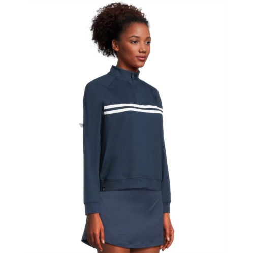 Look effortlessly chic and feel incredibly comfortable in the Barefoot Dreams Malibu Collection 1/2 Zip Pullover W/ Stripes. It features a stand collar, long raglan sleeves with rib-knit cuffs, and quarter zipper front closure.