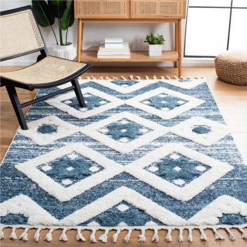 [US] Safavieh moroccan tassel shag area rug blue / ivory bohemian style non-shedding