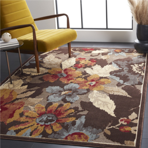 [US] Safavieh paradise machine made area rug dark brown country floral style easy care