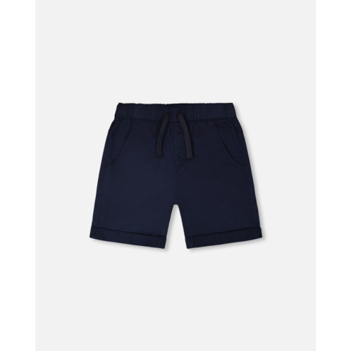 The stretch twill shorts in dark blue is a summer staple that blends comfort and style effortlessly. Designed with front slant pockets and folded hems, these bottoms offer a polished yet relaxed look for everyday wear. Made from soft stretch cotton twill with an elastic waistband and drawstring, these shorts move easily with boys and baby boys on their sunny adventures.