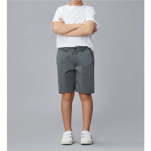Elevate your boy's summer wardrobe with the Jacob Slim Short by DL1961 - Kids', crafted for the perfect vacation look in solid Moss Grey. These shorts offer a comfortable slim fit, made from a breathable cotton blend consisting of 98% cotton and 2% Lycra, complete with classic slash pockets and a neatly tailored appearance. The garment-dyed piece features tonal stitching, antique silver hardware, a zip fly closure, and a hidden coin pocket at the front waistband. Designed for easy care, simply machine wash to keep these shorts looking sharp all season.